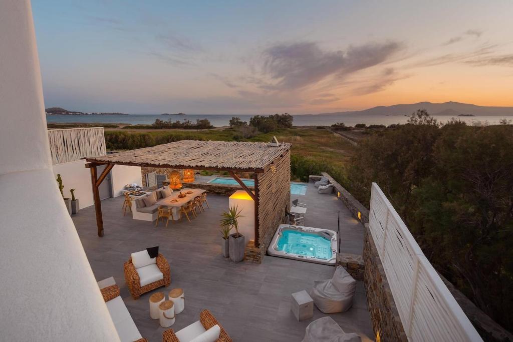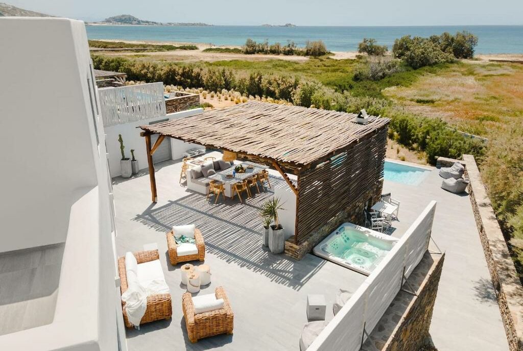 Experience the ultimate beachfront escape at Naxos Beach House Plaka, a luxurious villa with a private pool and Jacuzzi, just steps from Plaka Beach. Wake up to the sound of the waves, take a refreshing morning swim (only 2 minutes on foot!), and enjoy spectacular sunsets over the Aegean and the island of Paros.