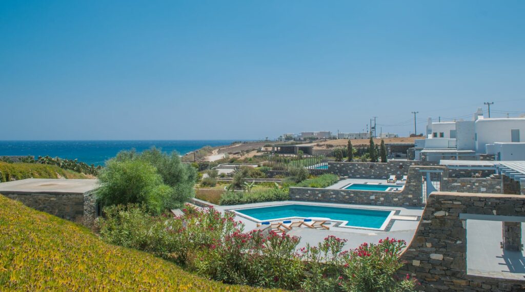 Located on the stunning shores of Golden Beach, Paros, our villas offer direct access to the crystal-clear waters of the Aegean Sea, ideal for a wide range of water sports and seaside activities.