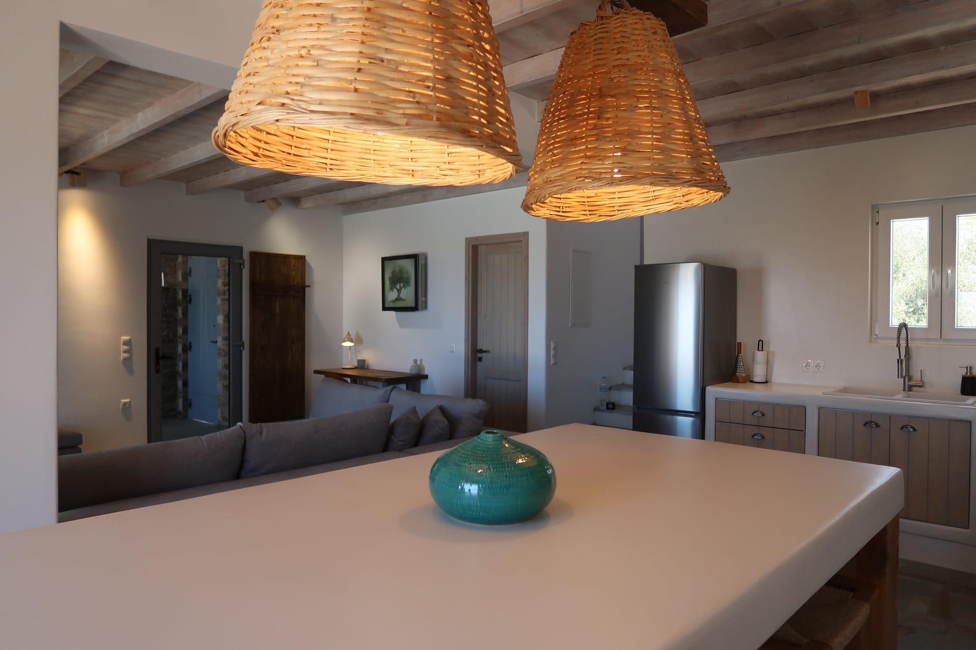 Blending timeless Cycladic allure with contemporary comfort, each villa features spacious living areas, refined minimalist interiors, and tranquil countryside views that create an atmosphere of pure relaxation and privacy. Thoughtfully designed for both style and ease, the villa offers generous indoor–outdoor living, allowing guests to unwind in a peaceful setting just moments from the island’s highlights.