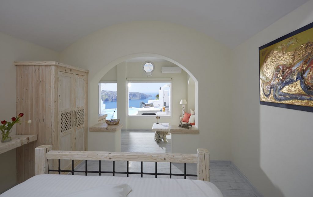 Each suite features comfortable accommodation with either a private pool or jacuzzi and all have stunning Caldera Sea Views.