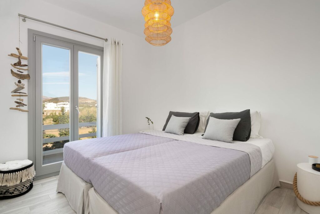 This beautifully renovated two-level villa combines modern comfort with traditional Cycladic charm. Nestled in a private complex of three villas in peaceful Kastraki, it’s just a short drive from the soft sandy beach and crystal-clear waters, ideal for water sports and exploring the area.