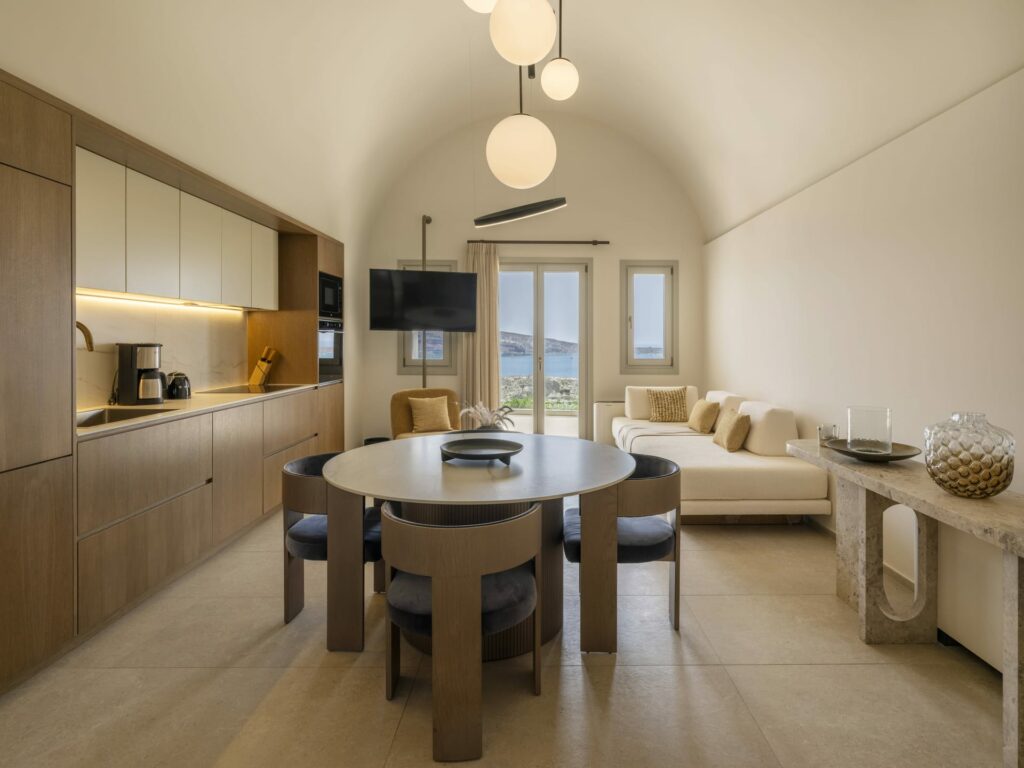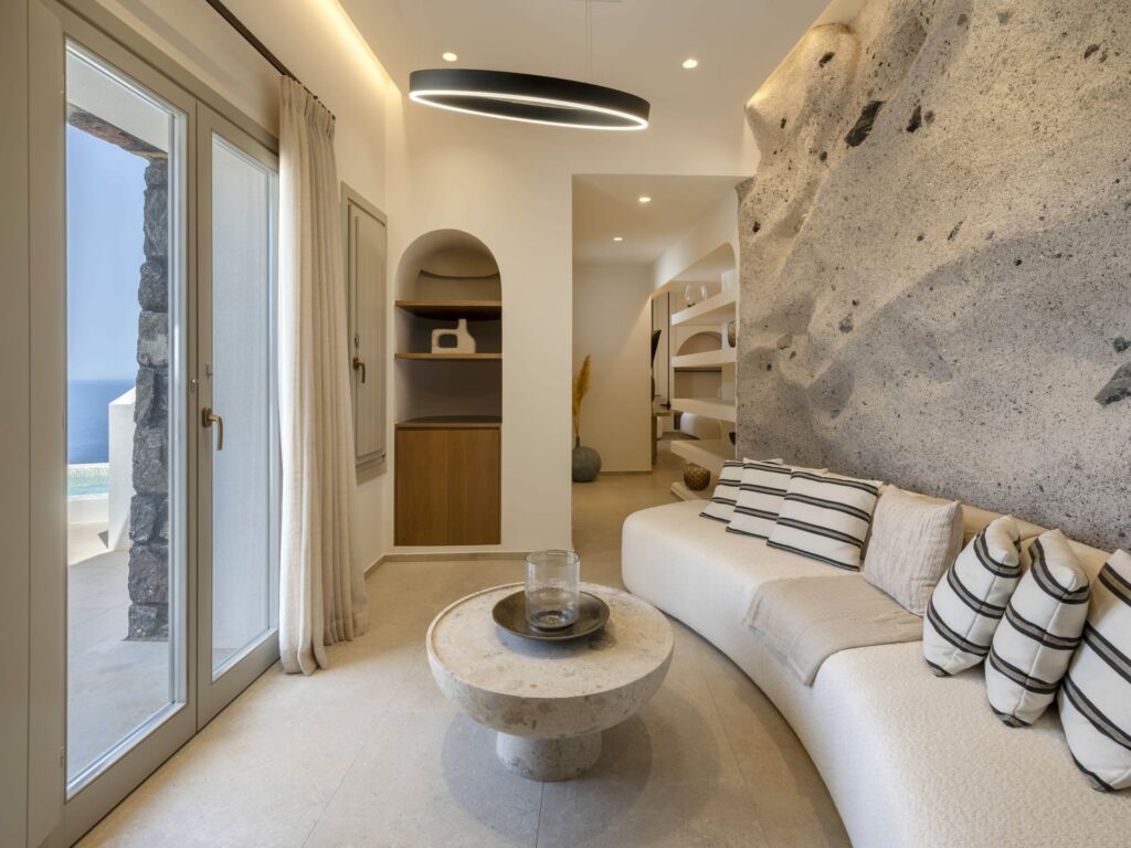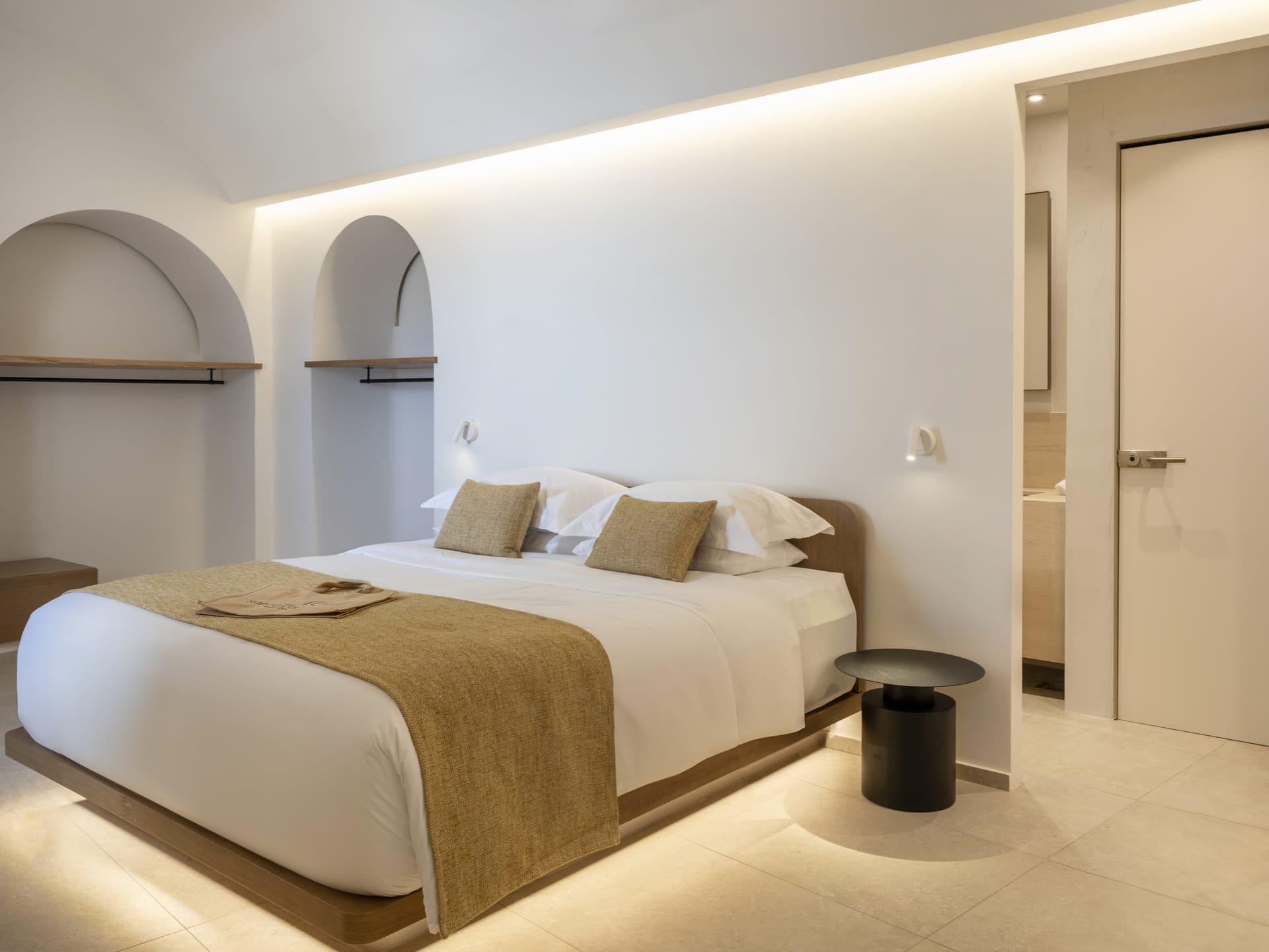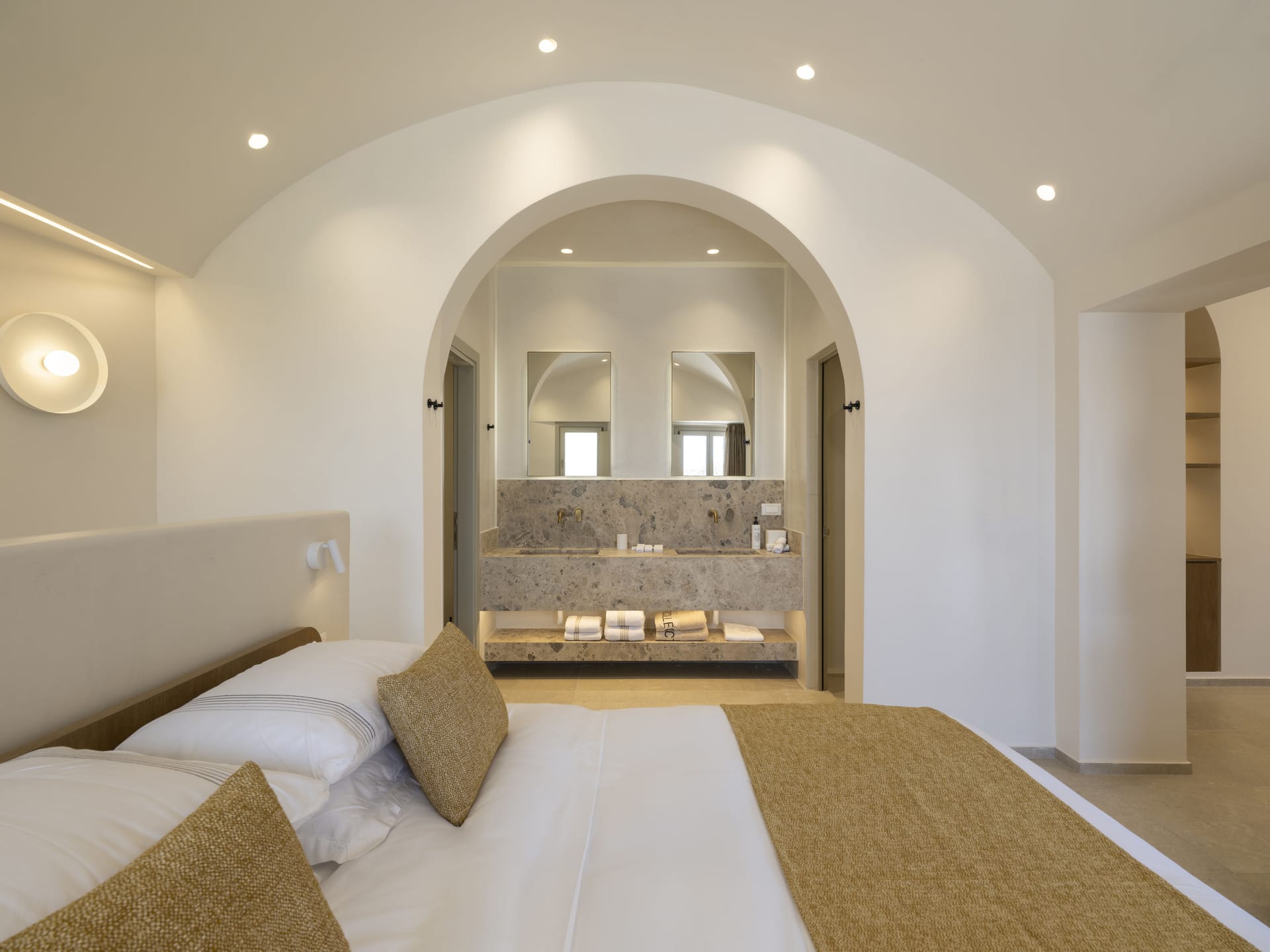 Each villa features 4 elegantly appointed en-suite bedrooms and can accommodate up to 8 guests. When booked together as the full Oia Elements Estate, the property transforms into an 8-bedroom luxury haven spanning 1,195 sq.m., comfortably hosting up to 16 guests.