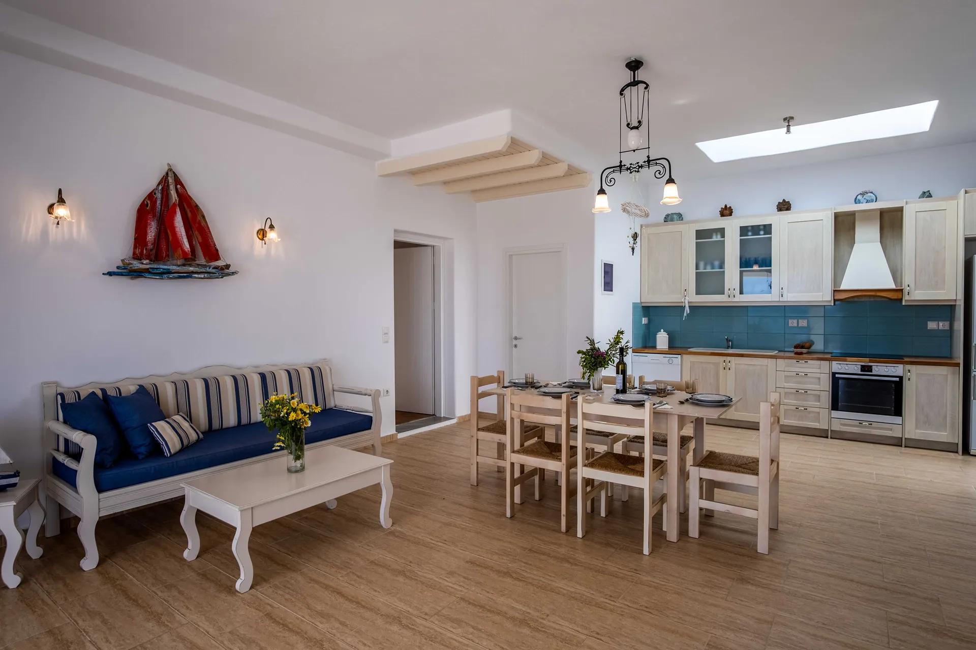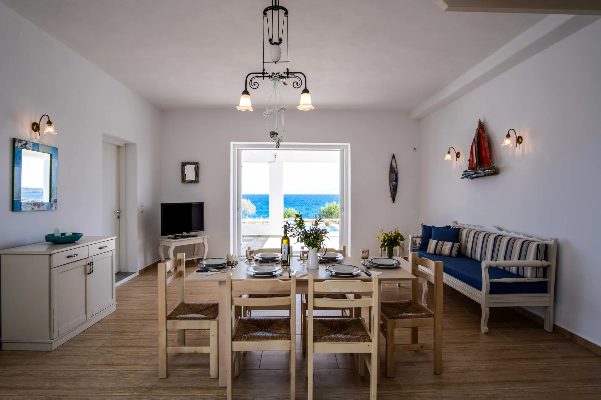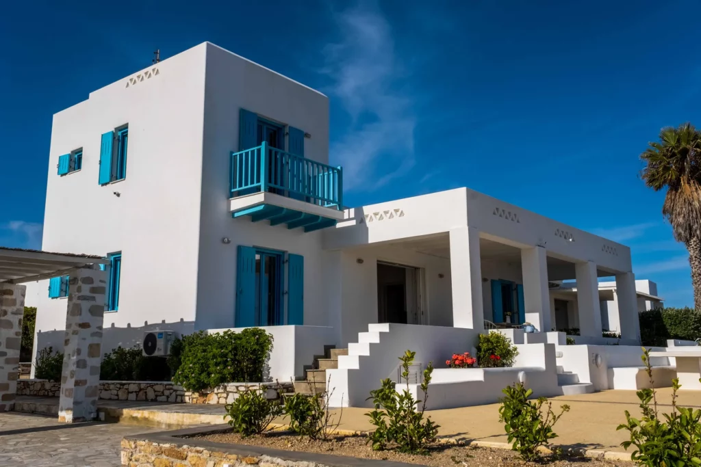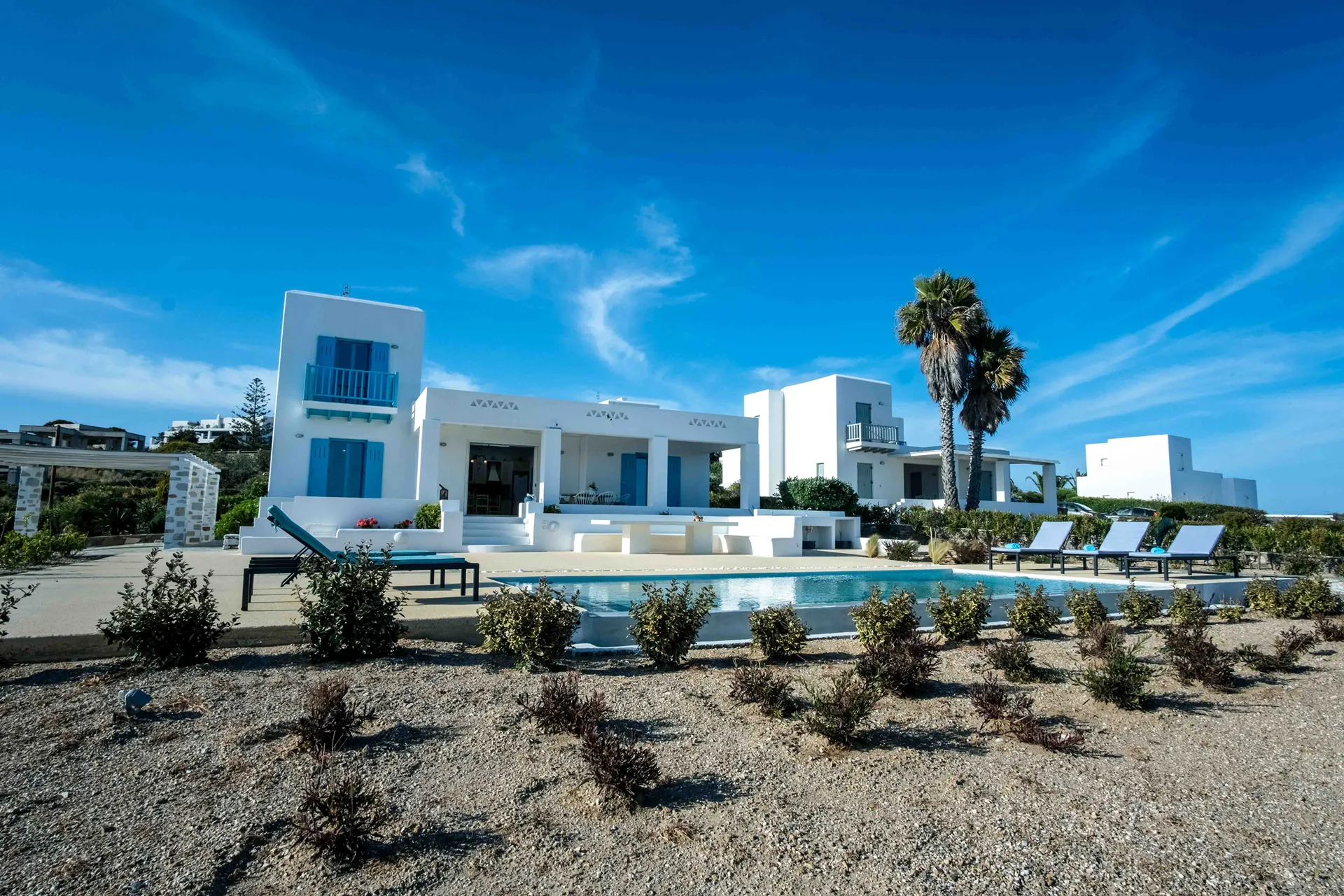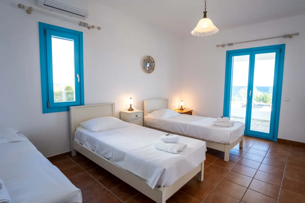 Blanco Azul is a traditional three-bedroom villa, ideal for families or groups of up to seven. Its simple, classic Cycladic style is complemented by a private swimming pool and a wonderful location just steps from a quiet, beautiful beach. It’s also perfectly situated for water sports enthusiasts near the Golden Beach area.