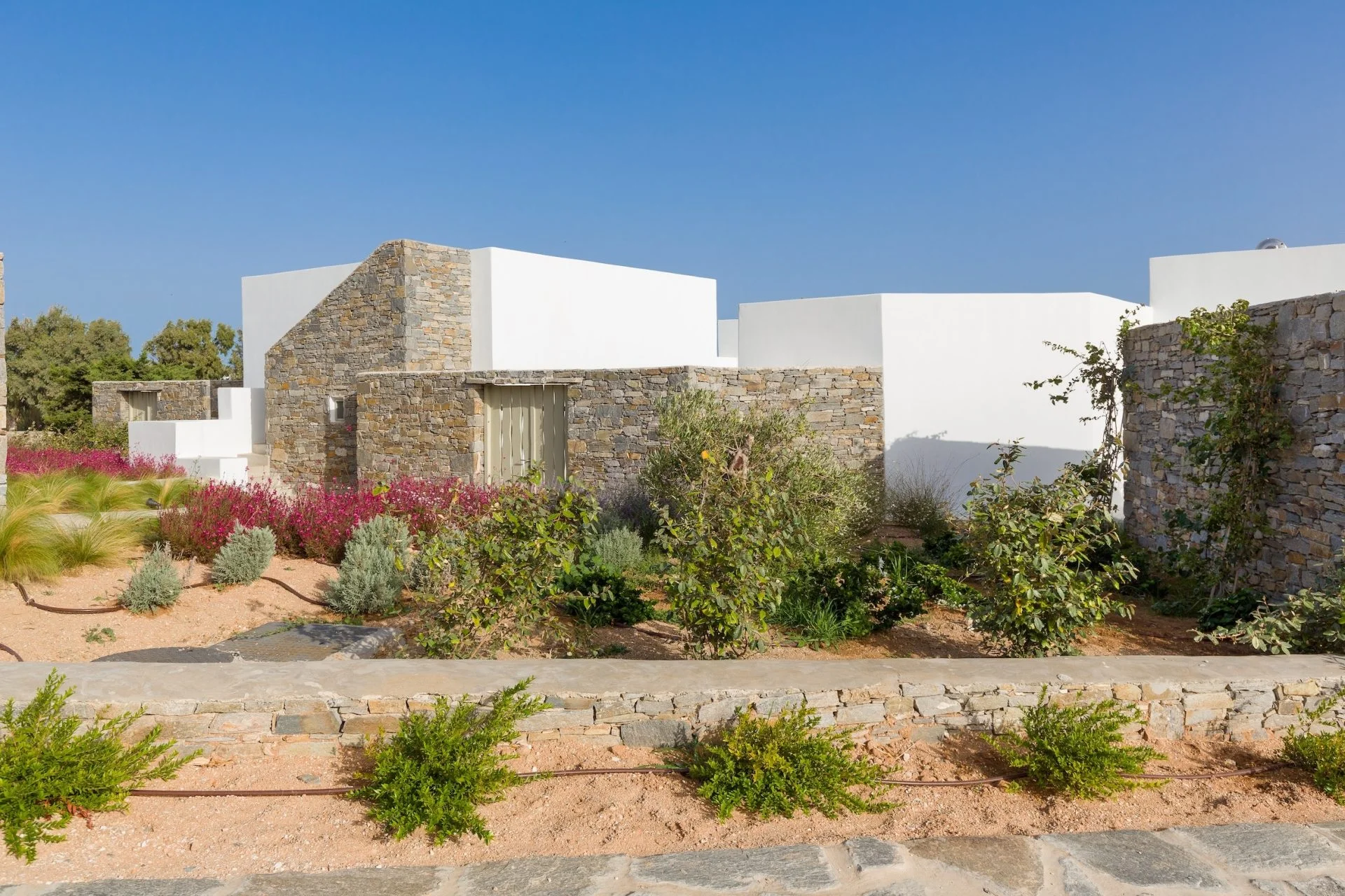 These spacious, sunlit homes offer shaded retreats during the day and enchanting ambient lighting at night. Every detail, from the welcoming main entrance to the thoughtfully designed outdoor spaces, celebrates the essence of the Cyclades, the refreshing sea breeze, the invigorating air, and the timeless wisdom of local architecture.