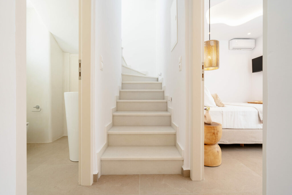 Three Cycladic villas offer 3 or 4 bedrooms and each has a private pool.