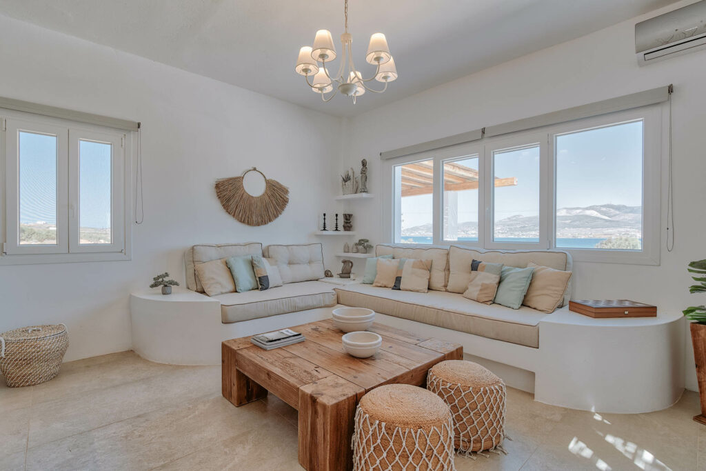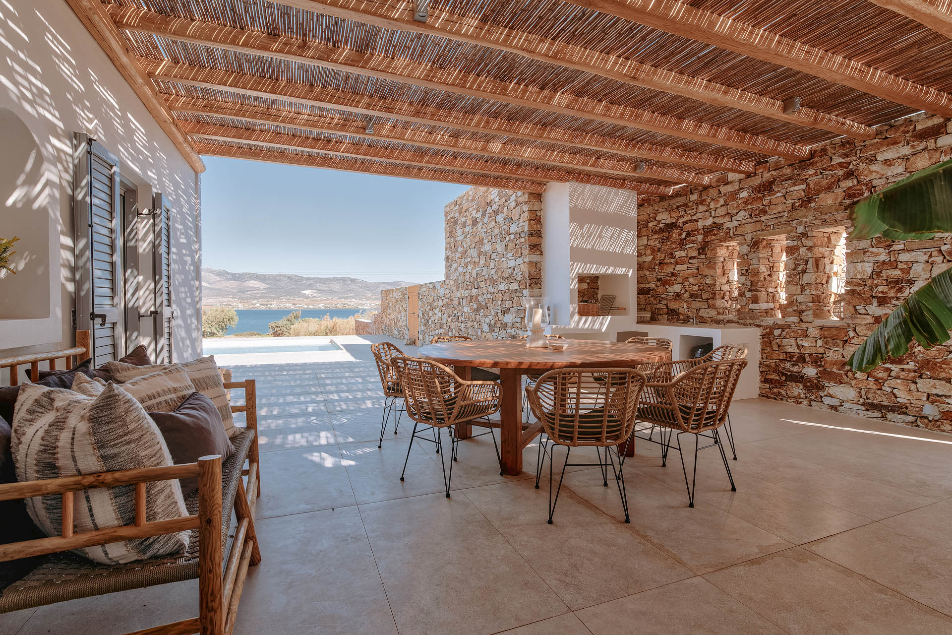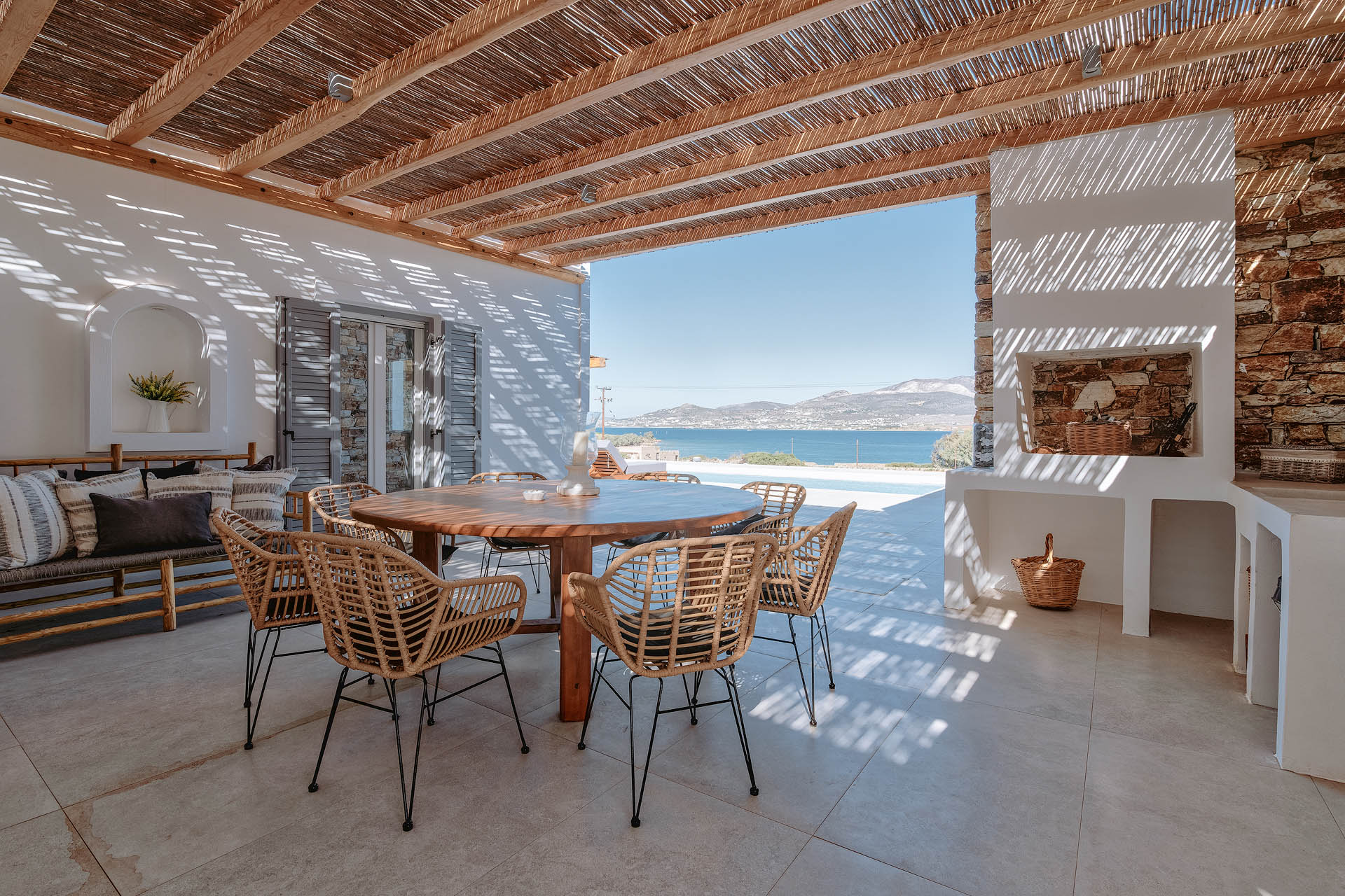The property features a private pool with sun loungers and views over the Aegean Sea.