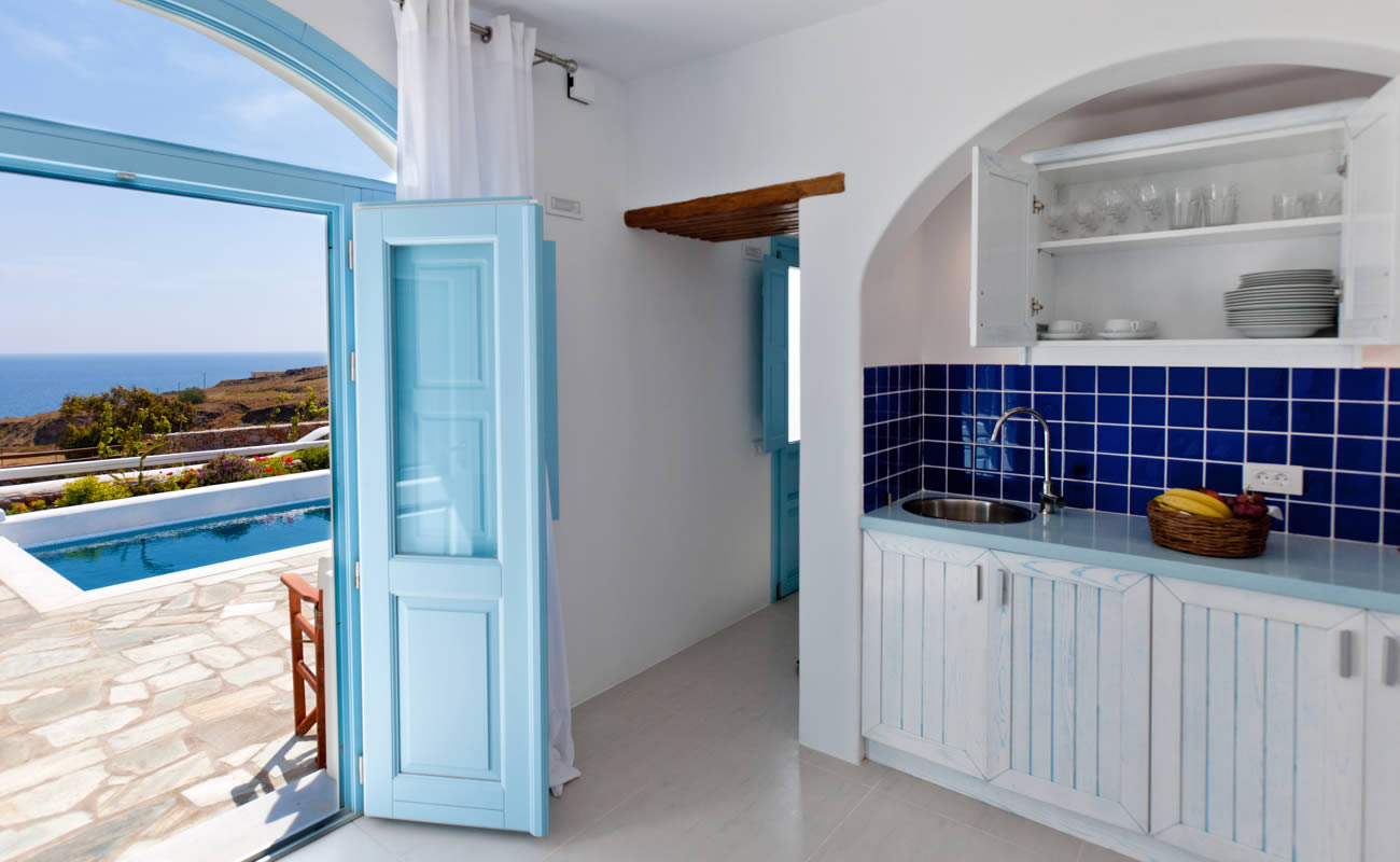 From the bedroom, you can also enjoy views of the sparkling Aegean sea.